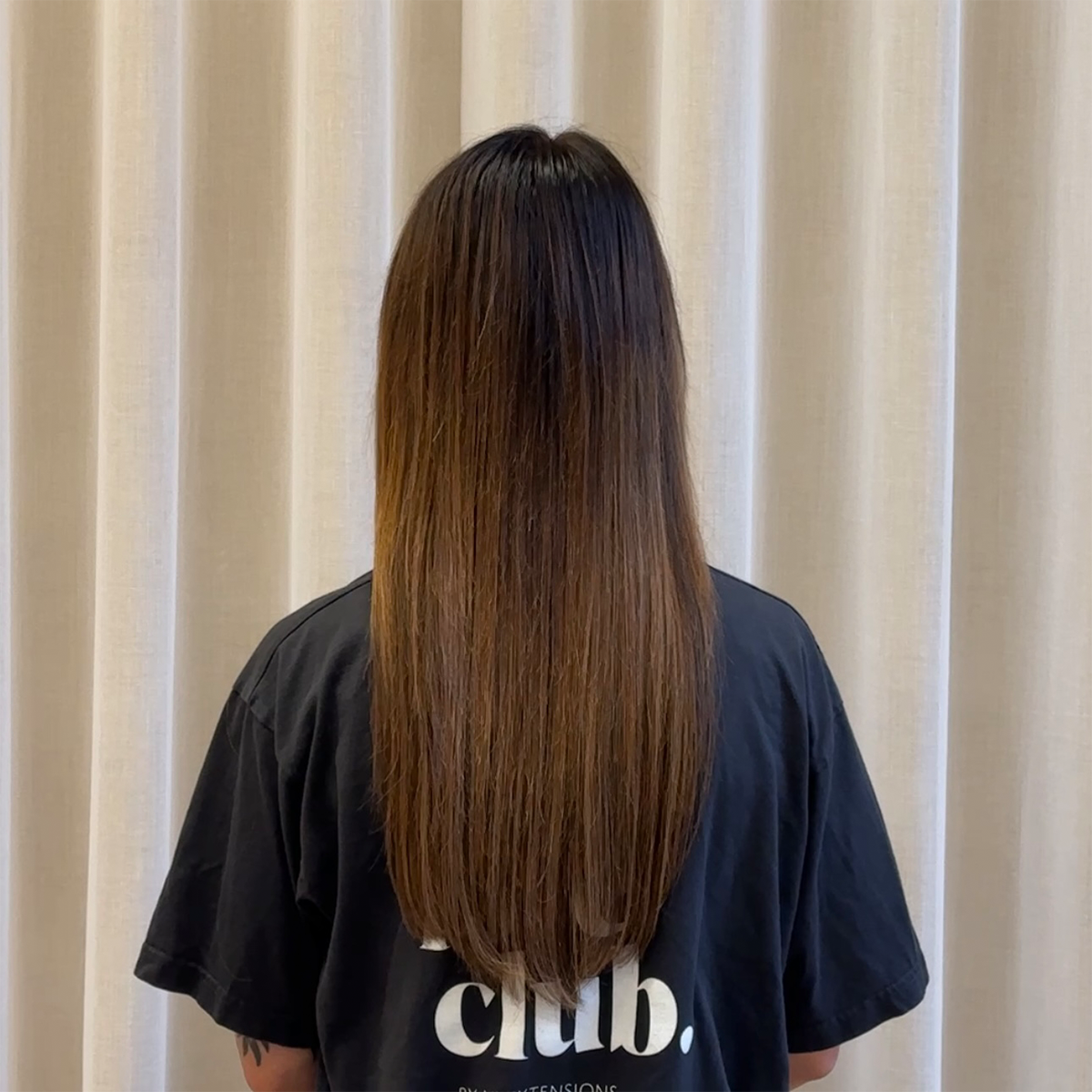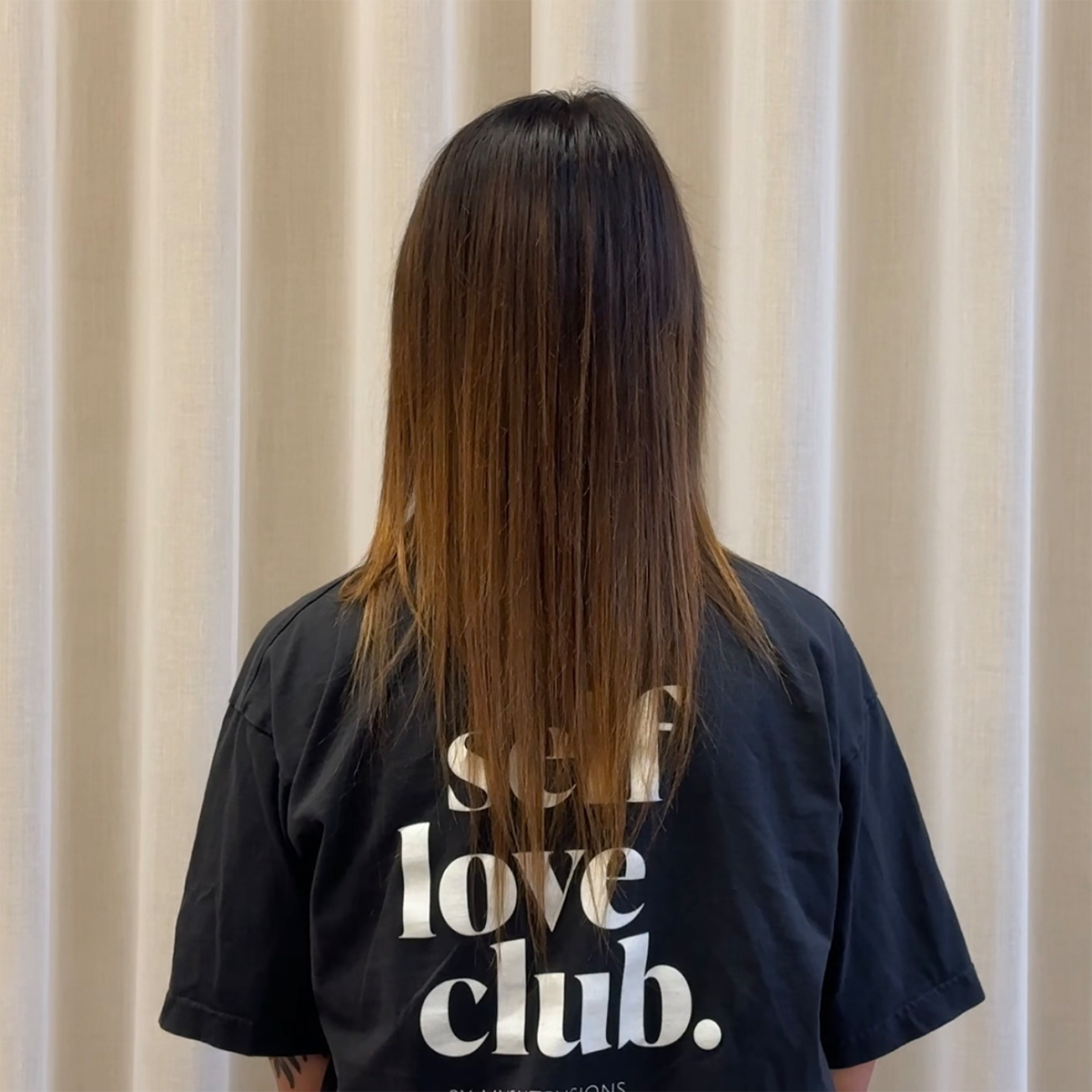 Sobald du deine gesamte invisible Tape Weft angebracht hast, bist du fertig. Wir empfehlen immer, deine Extensions an den Spitzen leicht zu kürzen, aber das bleibt natürlich dir überlassen.