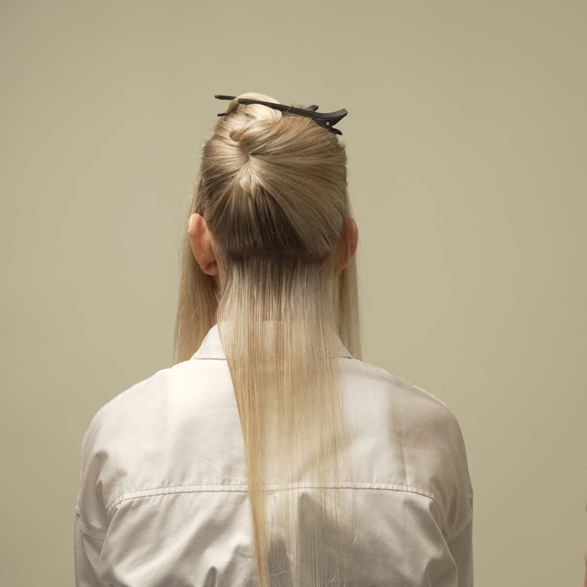 Ist dein Haar frisch gewaschen? Perfekt! Wenn nicht, dann wasche dein Haar gründlich und achte darauf, dass weder Spülung noch Haarkur deine Kopfhaut berühren. Andernfalls könnten deine Bonding Extensions herausrutschen.