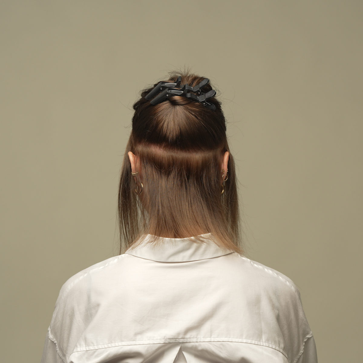 - Beginne etwa 3–4 cm vom Haaransatz entfernt, in Richtung deines Gesichts (so sind die Microringe nicht sichtbar, wenn du dein Haar hochsteckst).